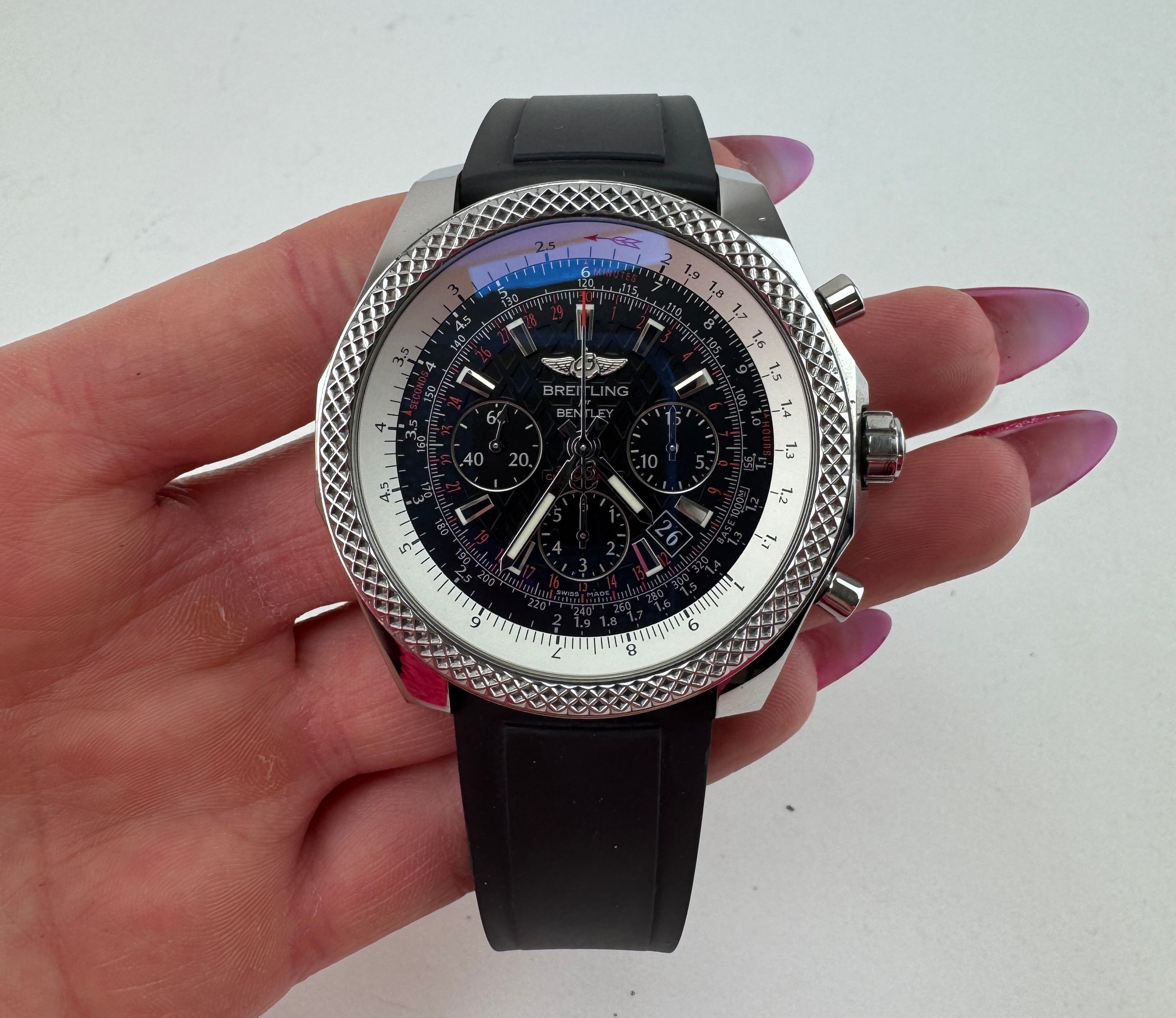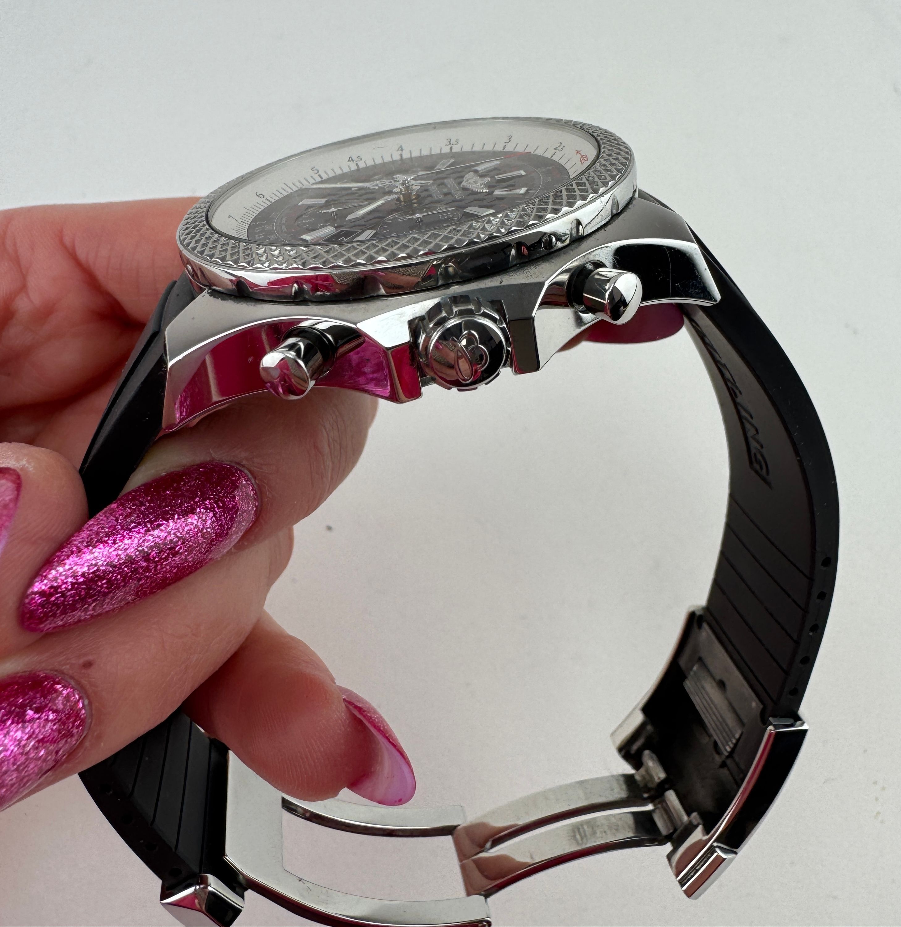 Eine hochwertige und auffällige Luxusuhr aus der beliebten Breitling Bentley Kollektion, ideal für Liebhaber großer und sportlicher Chronographen.