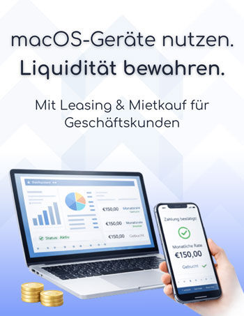 Unsere Leasing- und Mietkaufoptionen ermöglichen es Unternehmen und Selbstständigen, hochwertige macOS-Geräte zu nutzen, ohne hohe Einmalzahlungen leisten zu müssen. Sie profitieren von planbaren Kosten, steuerlichen Vorteilen und maximaler Flexibilität.